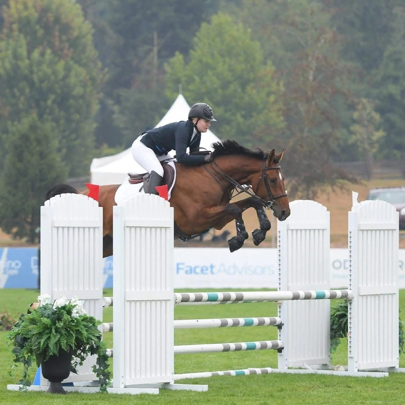 Athena is a beautiful mare that we purchased from her breeder as a 7 year old. Kaitlyn purchased her as a 2’6 hunter and developed her through the 1.25 level prior to selling her to California, where she continued her career under an amateur rider on the circuit. She came home several years later to join our team competing at the lower levels, and is now just over 20 years old and retired from sport.