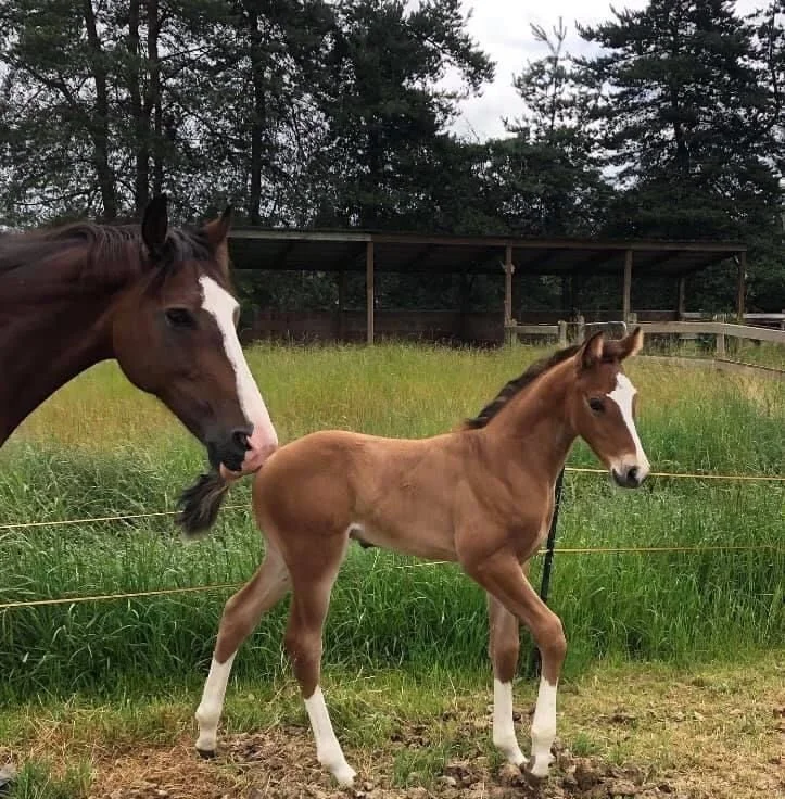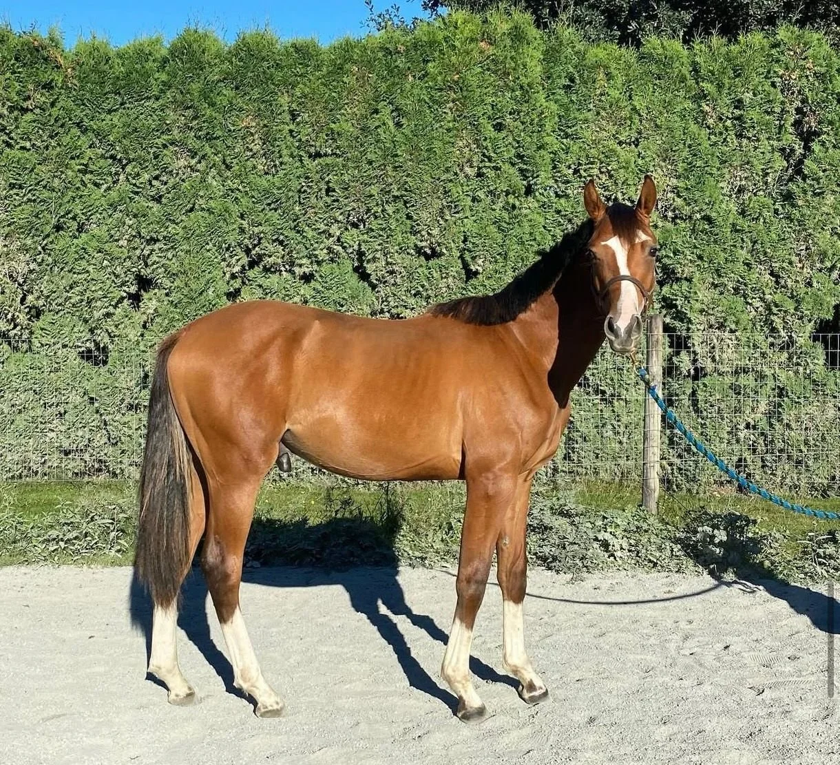 Sally is a beautiful mare with extensive miles to 1.35 in NA. She has been an amazing producer for us and has several offspring currently out in sport owned by Junior and Amateur riders. She has a very quiet temperament and was also very competitive to ride. She has exclusively been apart of our breeding program for nearly a decade. Her foals are always stunning, good movers with a lot of jumping ability. We hope to retain her next filly to be part of our breeding program.