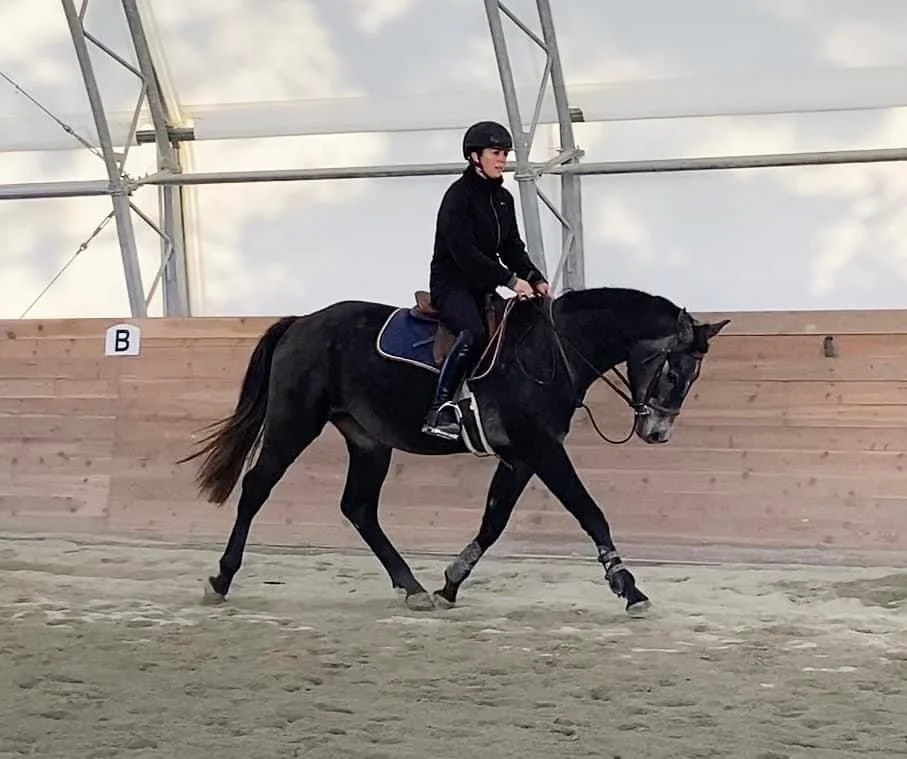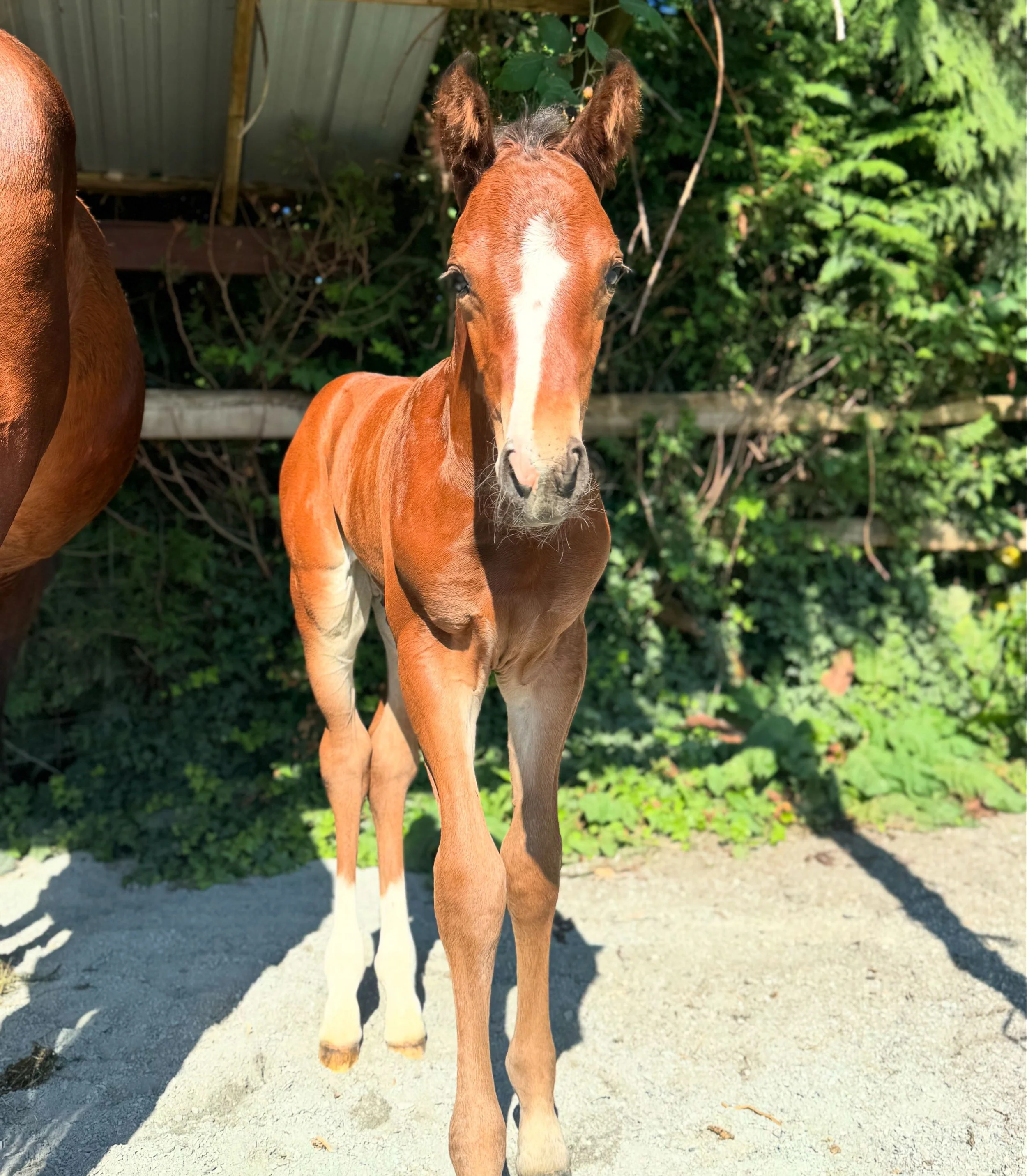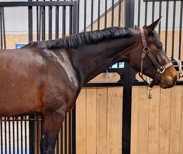 Stassina is an exceptional mare with a neat pedigree. She was also imported as a 4 year old and competed in the 5 year old classes in Canada. She is a beautiful mover, comfortable to ride and an impressive jumper. She absolutely bonds to her people and is a very sweet natured horse.