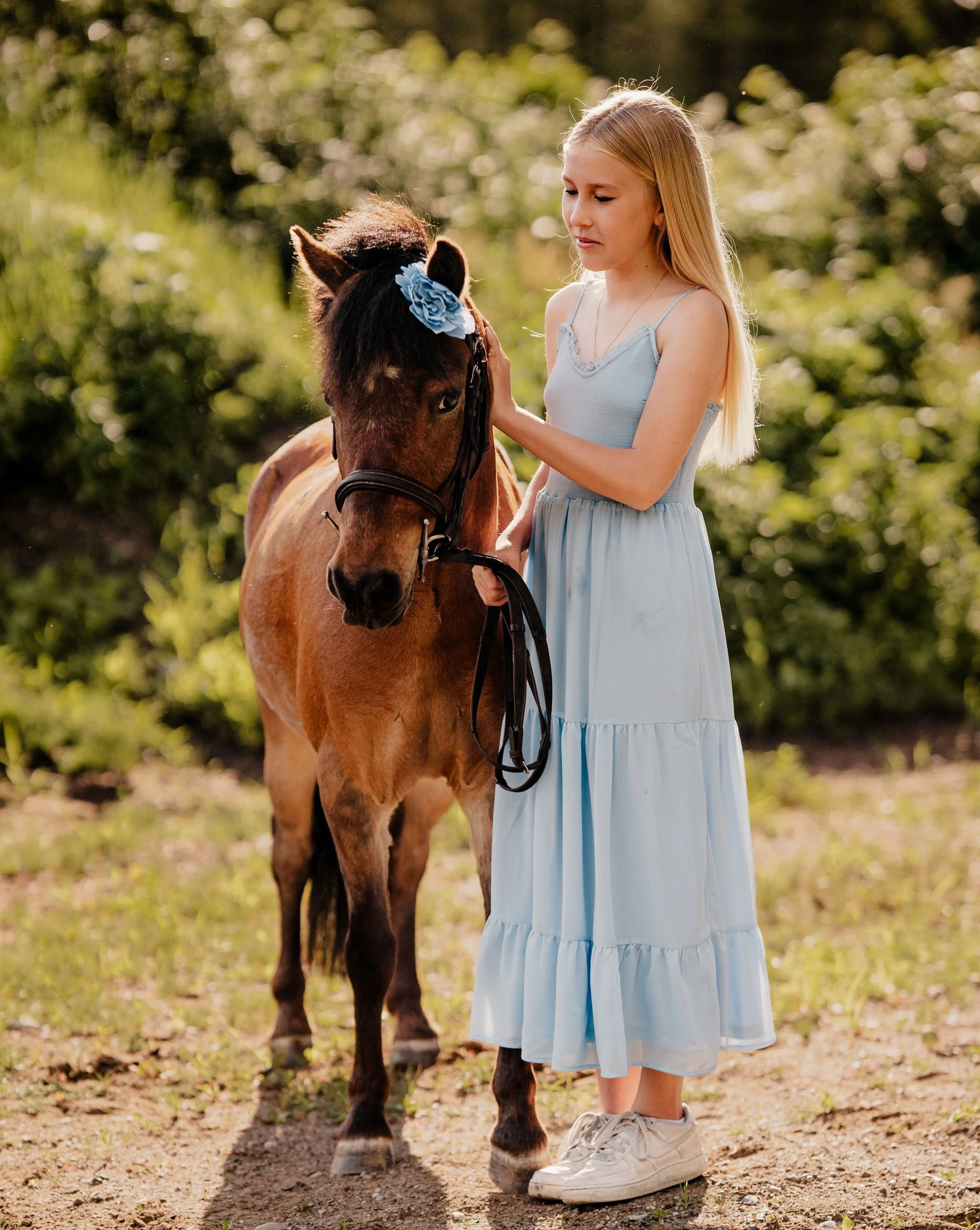 Sprite is an exciting lesson horse who caters to the riding abilities of many. He is full of character, and is a mix of sweet and sassy! He comes to us with an extensive jumping background, and also has dressage experience. His Icelandic heritage is incredibly unique as he has an additional gait called the tolt. He also walks, trots and has an exceptionally smooth canter, which makes him lovely to take a first canter on. With our more experienced riders, he sure shows his abilities jumping fences of all degrees of difficulty, and offers very expressive flying changes! He loves apples and enjoys grazing in the field.