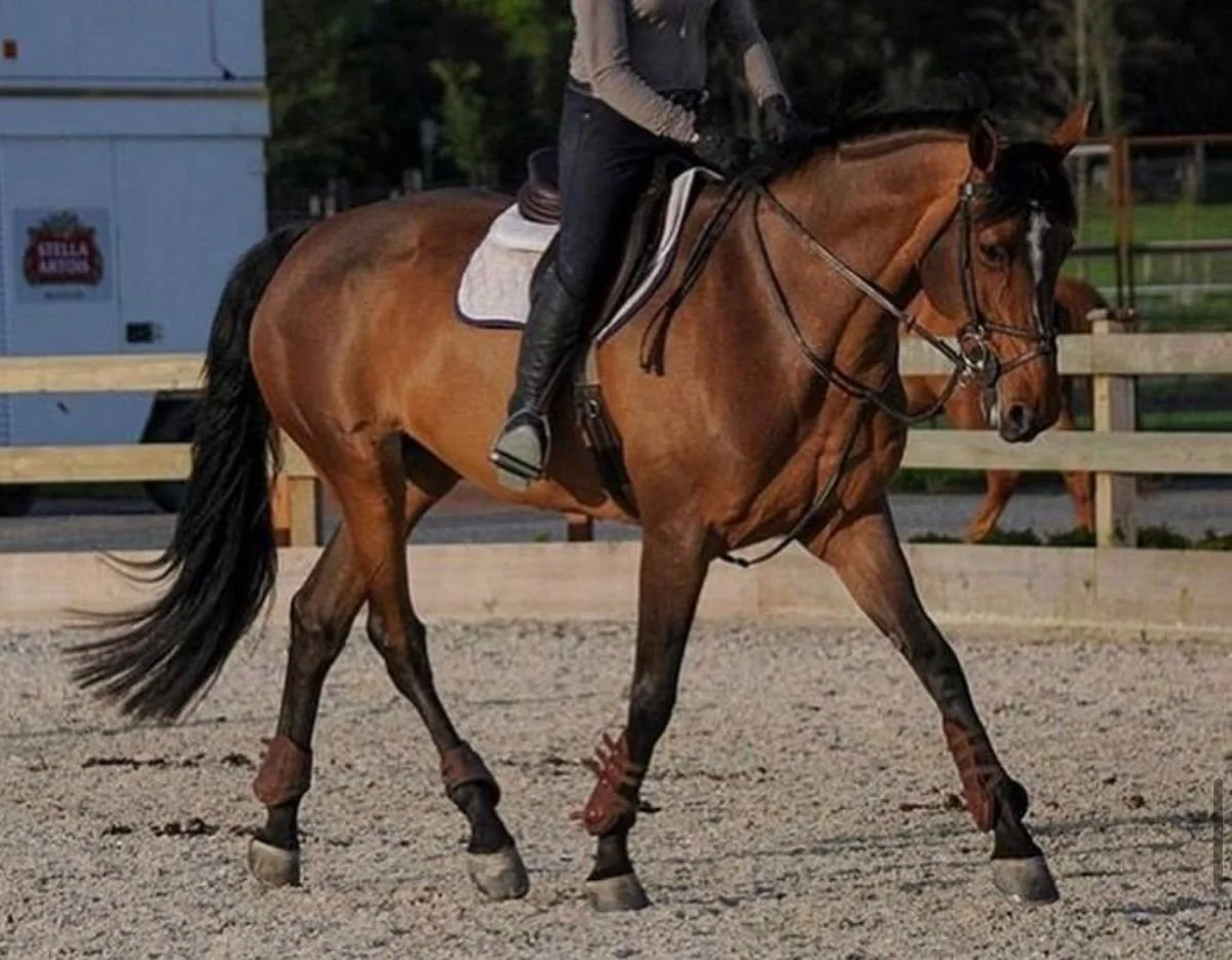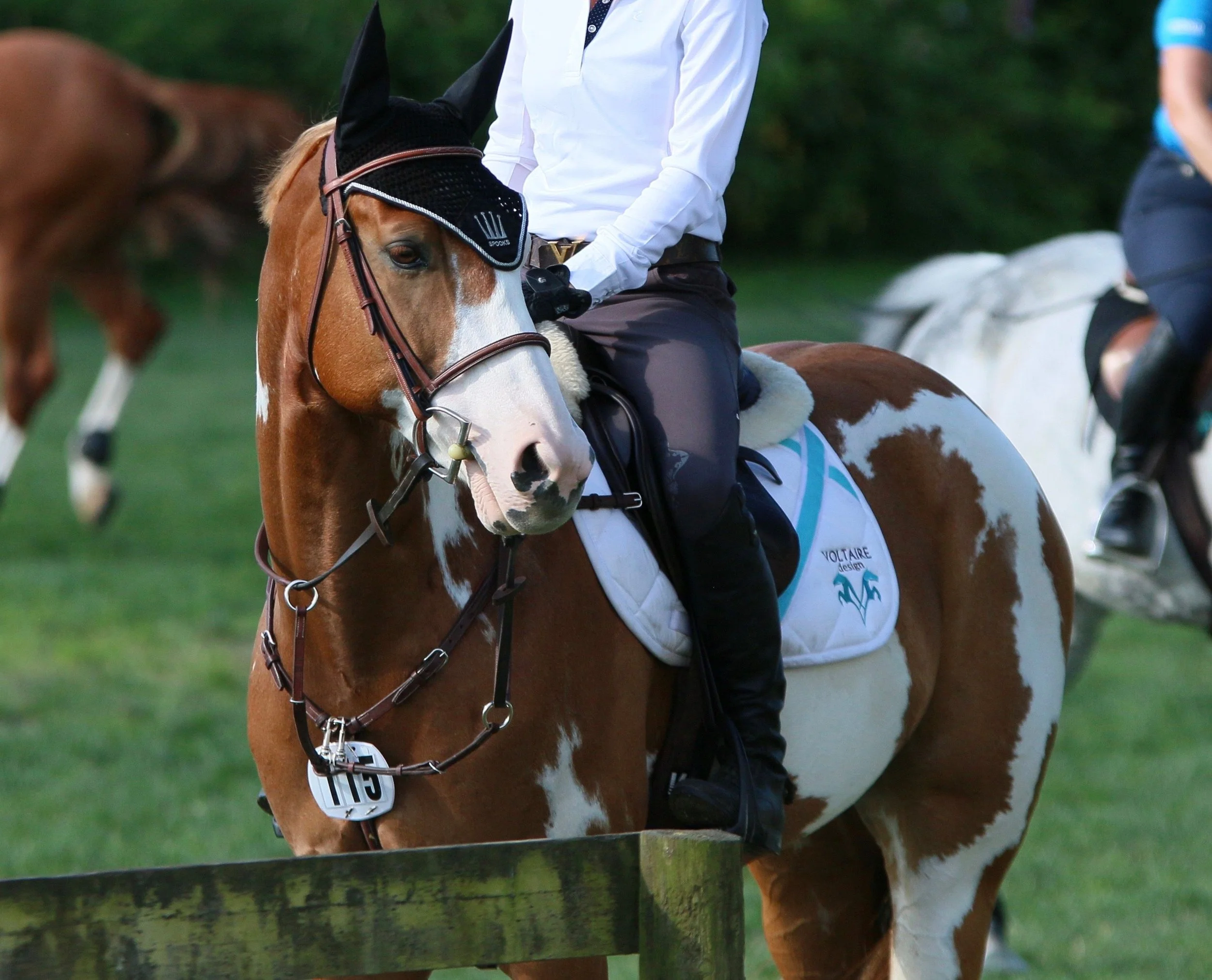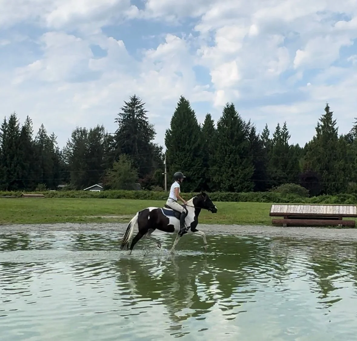 Maverick has been a huge part of our family and program for more than a decade. He has a huge resume including experience in dressage, hunter, jumper, cross country and western! He is a very steady guy for new riders and has a beautiful canter to learn on. He has perfect flying changes, and is rhythmic to jump. He enjoys a leisurely trial ride in the summer. Maverick is a kind soul who loves his riders and other equine friends.