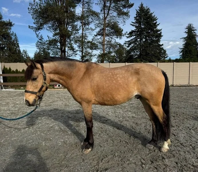 Copper is one of our smallest ponies at Empire used in our lesson programs. Originally from Northern BC, he is a hardy little guy with a ton of experience show jumping, competing in dressage, hunters, and eventing. He was also trained to pull a cart and enjoys trail riding. He is very calm and steady, making him the perfect pony to learn all the basics of horse care and grooming with. He is incredibly friendly, and always looking for a treat and hug!