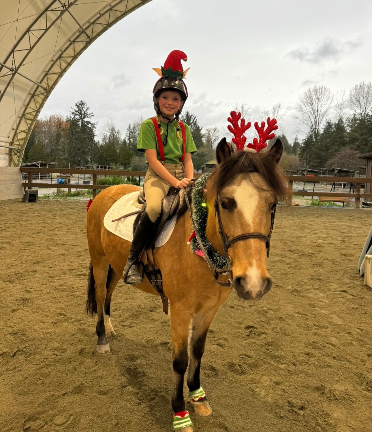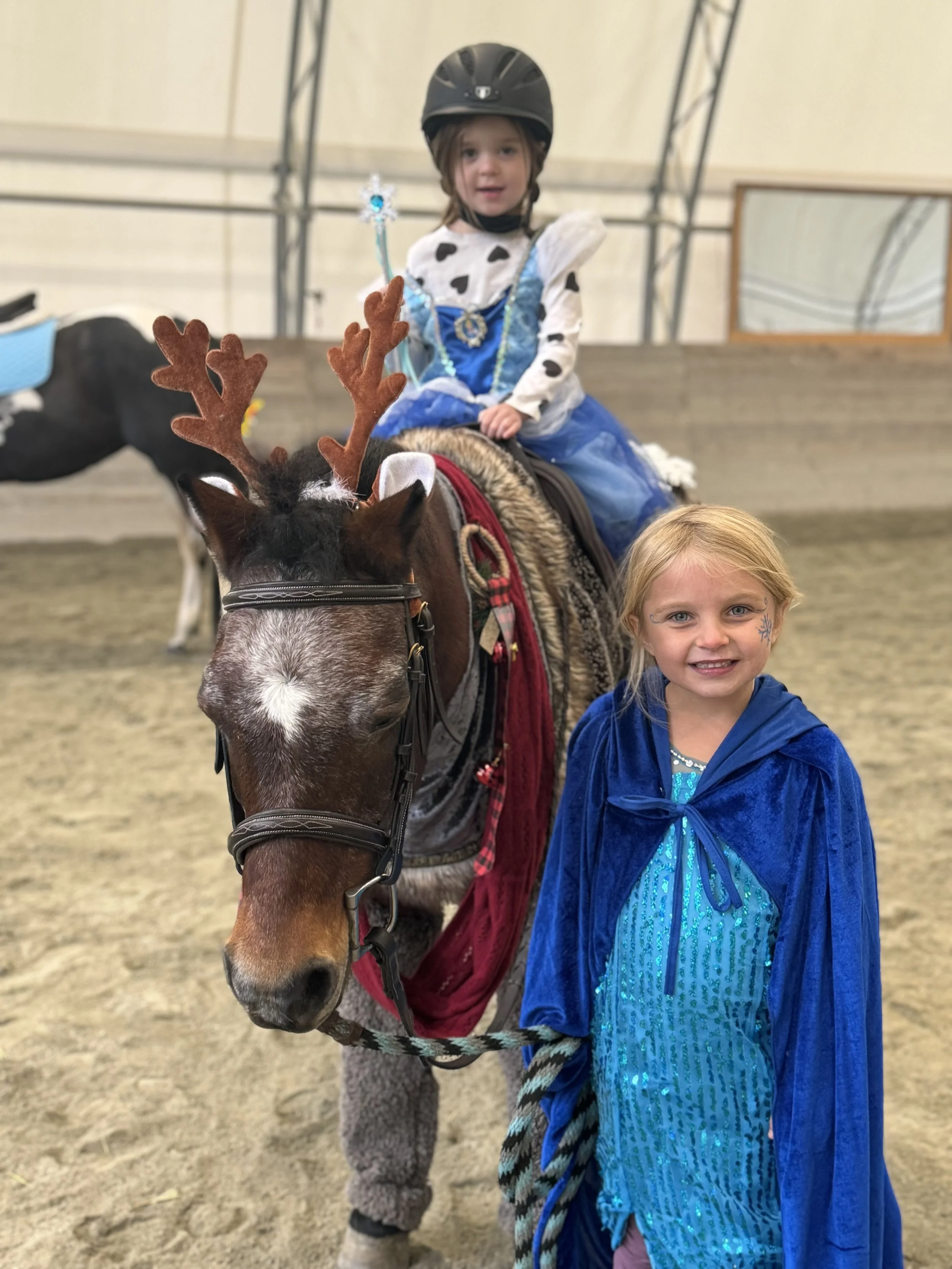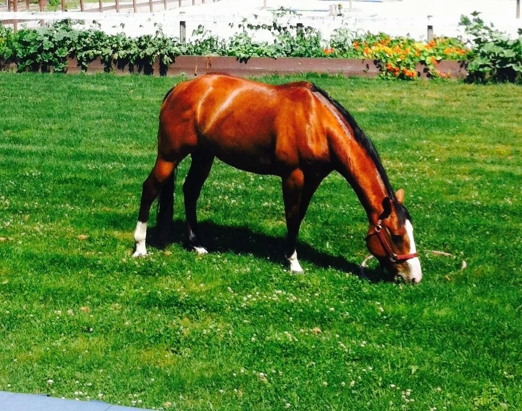 Story is one of our beloved lesson ponies that has been with us for many years. In her younger years, she was a successful hunter and jumper competitor. She has taken many of our riders around their first hunter trips at shows, first flat classes and earns top ribbons in every arena. She has an extremely smooth canter, and offers beautiful flying lead changes. She is a more forward travelling horse and loves to jump. She is full of personality and comes with some quirks, but her love for her kids and jobs is unmatched. She bonds deeply with her special equine friends, and is always up for some love from her riders.